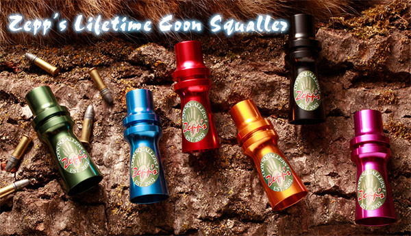 The #1 selling coon squaller in the United States. The only one with a Lifetime Warranty on the reeds lanyard and aluminum body! Top quality lanyard is included. World Champion Coon Hunters use, swear by it and recommend it to others!! Three, precisely hand tuned reeds give it a life like squall and coon growl. Six colors to choose from! Please specify color: Green, Red, Blue, Black, Gold, Purple or PinkZepp's Lifetime Squaller Prices